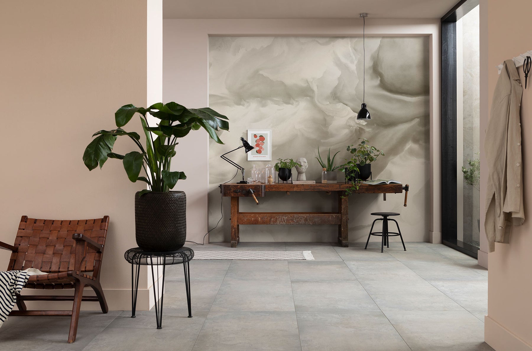 The natural color tones in this wallpaper can achieve a relaxed, peaceful environment. The soft edges of its curved forms add up comfort feelings to the interior.