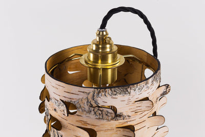 This birch bark hanging light is created and produced in Berlin, Germany