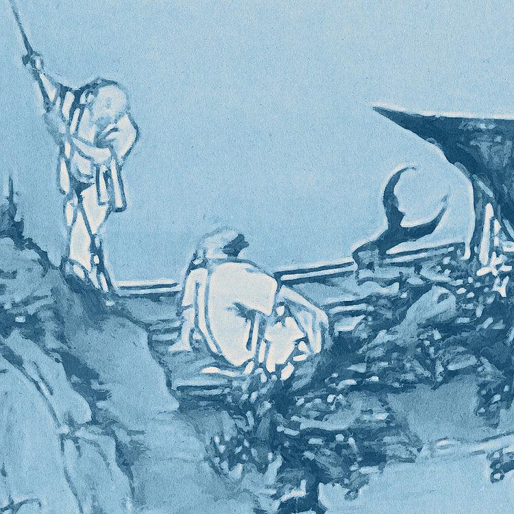 This vintage blue wallpaper is created and produced in Rosenheim, Germany