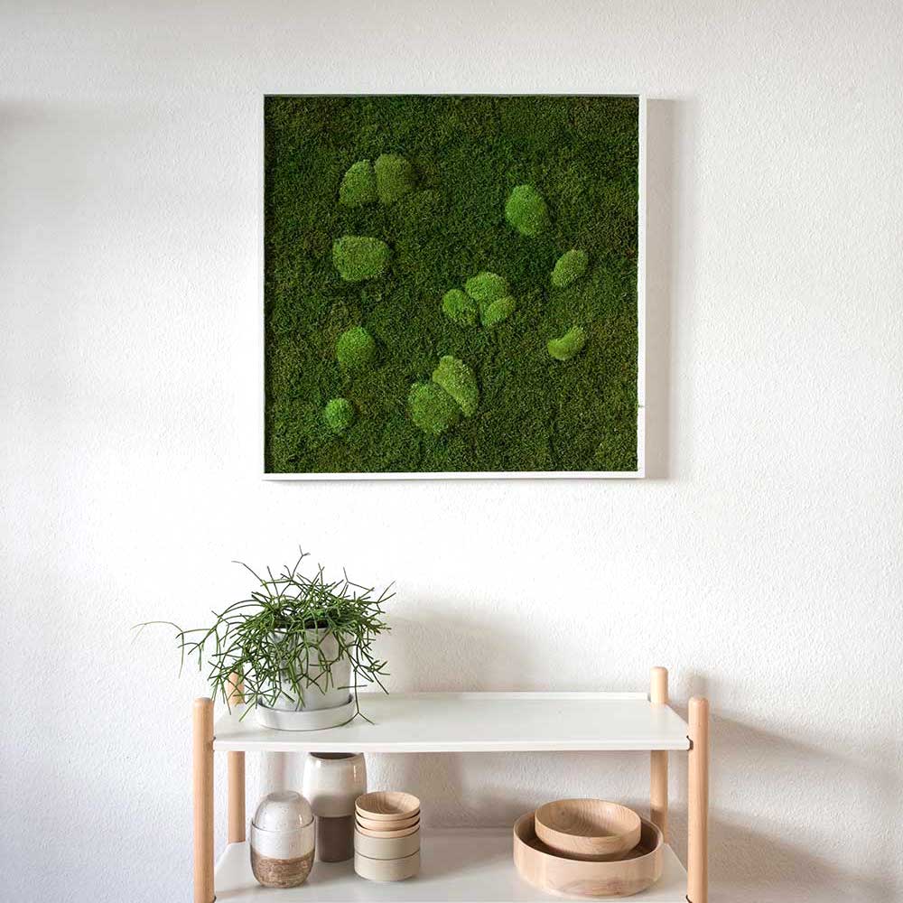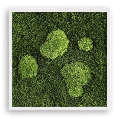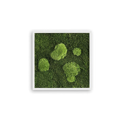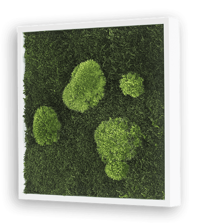These moss frames are 100% real and durably preserved in a special process. Though these plants don't require light or water, they retain their vividly green appearance and a fresh, soft feel.