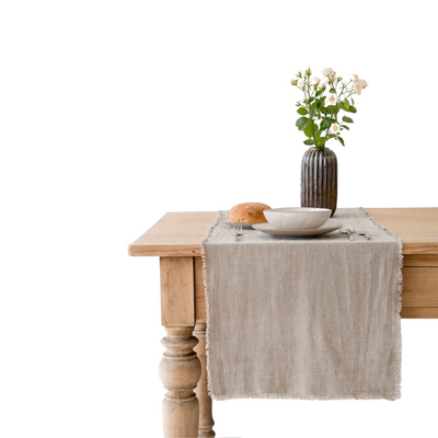 Natural Linen Table Runner with Fringe (Set of 3)